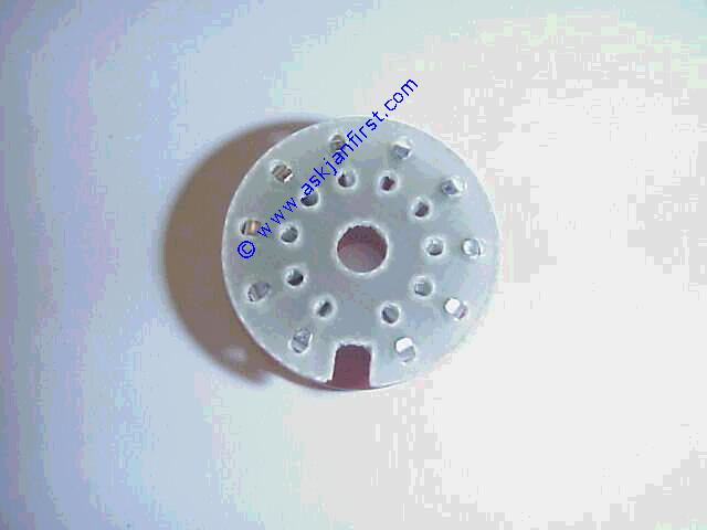 FAS011 | Fassung Chassis Oktal Kunststoff Spezialversion für mag. Augen, kreisrunde Scheibe ohne Befestigung, Gebrauchtware | 8 pin octal special version without mountings for tuning indicators like EM34. Used | octal plastique, version speciale pour les tubes-indicateurs comme EM 34 etc. Occasion | 1,20 | 1,43 |